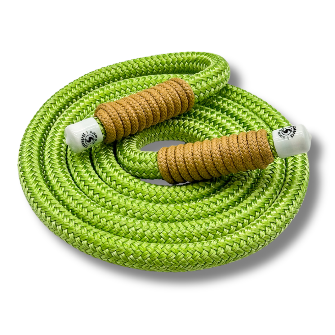 Small but mighty. The "Flowgu" rope is designed for those who enjoy the "heavy flow rope look" without the extra weight and girth. With its slim grip handles, smaller hands can enjoy this mighty rope! Inspired by the iconic tiny green legend with big energy, this 16mm Protohype-sized rope channels balance, agility, and pure vibes.