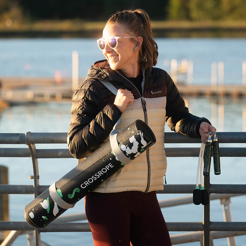 Perfectly balanced for durability and portability, this 24” x 48” mat is designed to protect your ropes and joints. Cotton sling included.