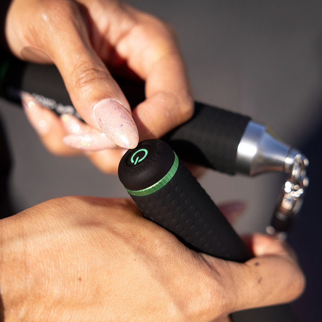 All-new AMP Vibe handles feature wider, silicone grips for improved control and comfort. Available in four vibrant colors to energize every jump. Bluetooth-enabled and compatible with all fast-clip ropes and Ropeless attachments.