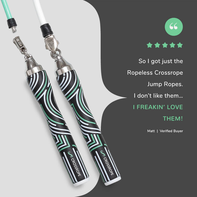 Designed to mimic the experience of a traditional jump rope, Ropeless ropes are perfect for anyone with limited space or a lower ceiling height. Works great for jumpers who want to reduce noise. Includes 1/4 LB and 1/2 LB Ropeless weights + a pair of 2023 Slim Handles.