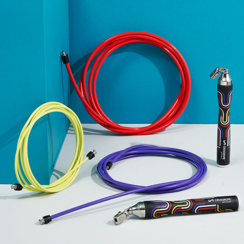 The Speed Performance Set is designed for high-performance jump rope training. Includes limited edition handles + 3 Oz, 6 Oz, and 9 Oz speed ropes. Elevate your speed, performance, and double unders.